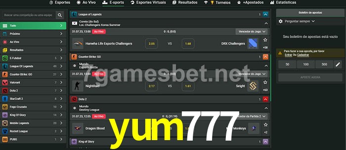 O yum777 oferece uma grande seleção de opções de apostas em e-sports com probabilidades competitivas